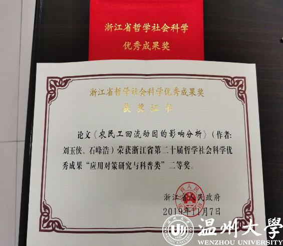 国家社科基金项目结题要求严格,每年都有多个项目暂缓结项或被终止,结项等级为“优秀”的成果数量很少,2019年结项优秀率为5.7%。本次全国哲学社会科学工作办公室共验收318个年度项目、青年项目和西部项目结项申请,经同行专家鉴定,265个项目予以结项,其中优秀17项,结项优秀率5.3%,42个项目暂缓结项,11个项目被终止。该项目是刘玉侠教授关于农业转移人口研究的第13个项目(包括2个国家社科基金项目、1个教育部人文社会科学项目、3个省哲学社会科学规划项目等)。“优秀”鉴定结果是对刘玉侠教授多年来关爱关注农民工群体,冒严寒酷暑深入农村调研,孜孜不倦进行科学研究的充分肯定。项目最终成果包括著作《回归与超越:回流农民工的社会作用研究》(约33万字,人民出版社待出版)和12篇论文,论文中多篇被《中国社会科学文摘》、《新华文摘》、人大复印资料转载,1篇获浙江省第二十届哲学社会科学优秀成果二等奖。