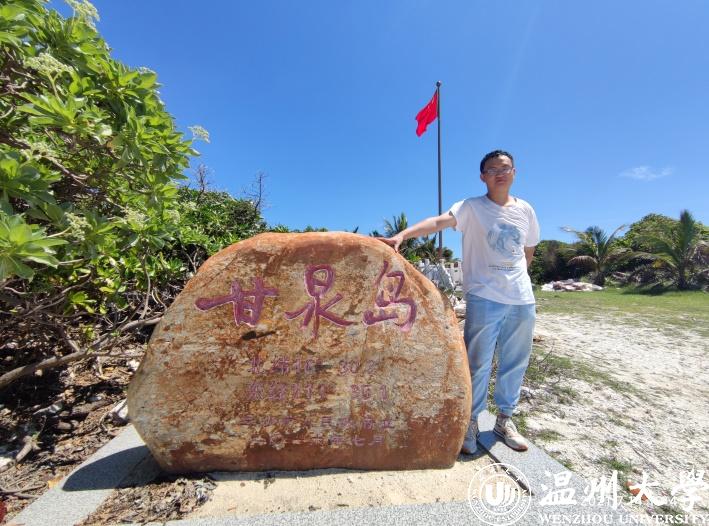 艰苦奋斗,求索科研之果。西沙是典型的高温、高湿、高盐度、高日照,缺土、缺淡水,多热带风暴的“四高两缺一多”的艰苦地区,在岛上的生活更是艰苦且枯燥的。刚到甘泉岛时,赵鸿运不仅要在生活上克服吃住问题,还要在科研上潜心部署。经过短暂的休憩调整,目前他已经较好地适应了甘泉岛的环境,并投入到紧张的科研工作当中。“我是一名温大学子,同时也是一名中共党员。这里的条件虽然艰苦,但我会继承并发扬西沙精神,耐得住寂寞,守得住繁华,在这里脚踏实地地工作,争取获得优异的科研成果,与西沙军民共同承担起守护祖国南疆的碧海蓝天重任。”赵鸿运坚定地说道。