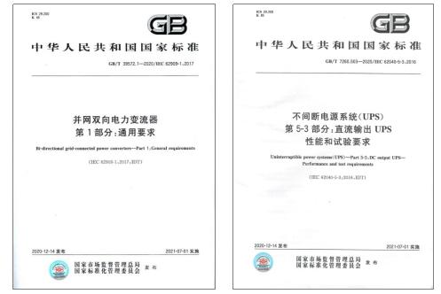 国家标准《不间断电源系统(UPS) 第5-3部分:直流输出UPS性能和试验要求》(GB/T 7260.503-2020)的起草单位为科华恒盛股份有限公司、广东志成冠军集团有限公司、西安电力电子技术研究所、施耐德电气信息技术(中国)有限公司、51暗网 、华为技术有限公司等22家行业知名企业和科研院校。
