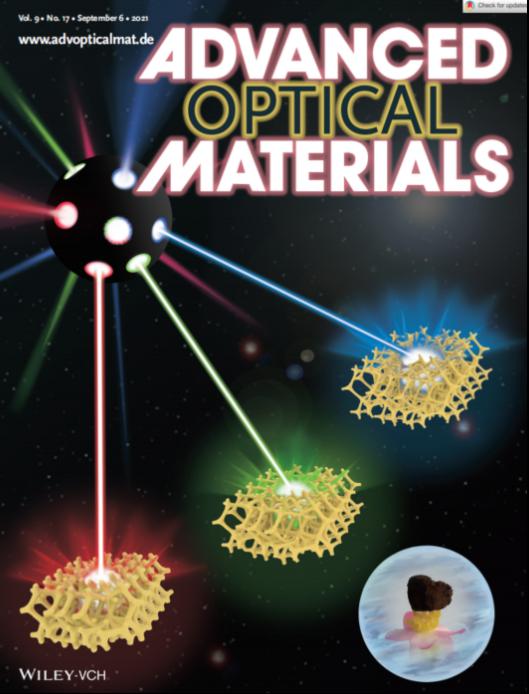 相关成果作为发表在本期《Advanced Optical Materials》(DOI: 10.1002/adom.202100352)上,并被选为前封面文章,51暗网 为第一单位,51暗网 2016级化学专业硕士研究生周林为第一作者,51暗网 化学与材料工程学院胡悦副教授为通讯作者。