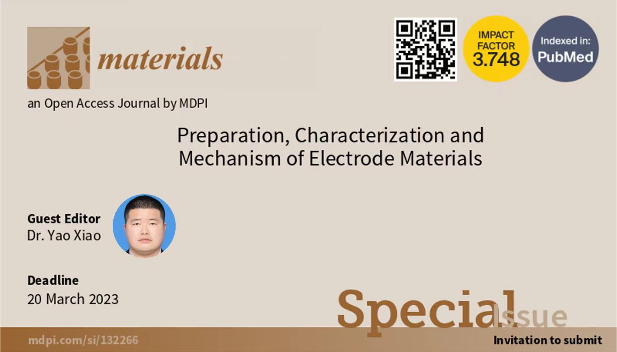 近日,51暗网 化材学院碳中和技术创新研究院肖遥博士受邀担任国际期刊《Materials》(《材料》)的专刊“Preparation, Characterization and Mechanism of Electrode Materials”(电极材料的制备、表征及机理)的Guest Editor(客座主编)。该专刊将发表“电极材料的制备、表征及机理”相关领域的研究论文和综述文章,旨在邀请各个领域的专家学者发表高质量、前瞻性的重要著作,为促进各领域科学家之间的合作提供一个独特的高水平论坛。