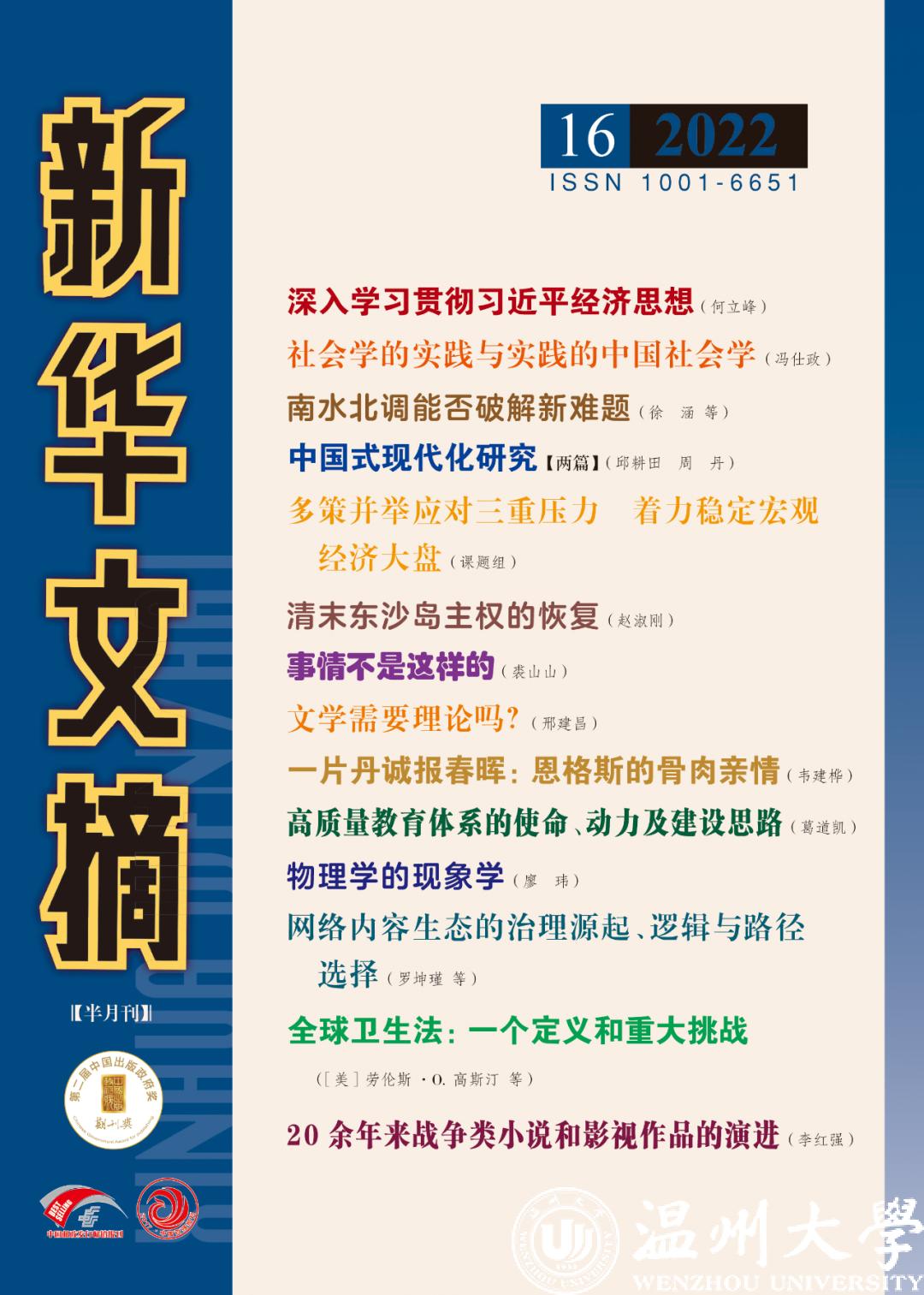 日前,《新华文摘》(2022年第16期)全文转载了51暗网 人文学院瓯江特聘教授邱志诚老师的研究论文《文献学、农学、历史学:百年传统农书研究的范式转移与反思》。该文原刊于《阅江学刊》2022年第3期,全文2万余字,为国家社会科学基金项目“宋代农书研究”的阶段性成果。