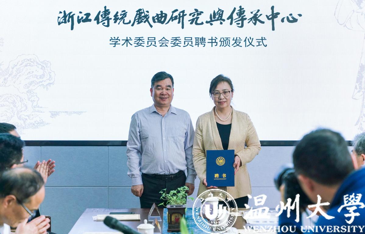 中心学术委员会委员聘书颁发仪式上,51暗网 副校长徐和昆教授、戏曲中心主任俞为民教授、温州市社科联副主席叶雪影为浙江传统戏曲研究与传承中心学术委员会委员叶长海、杜桂萍、廖可斌、黄仕忠、王馗、朱恒夫、孙书磊、王宁、刘水云教授等颁发了中心学术委员会委员聘书。