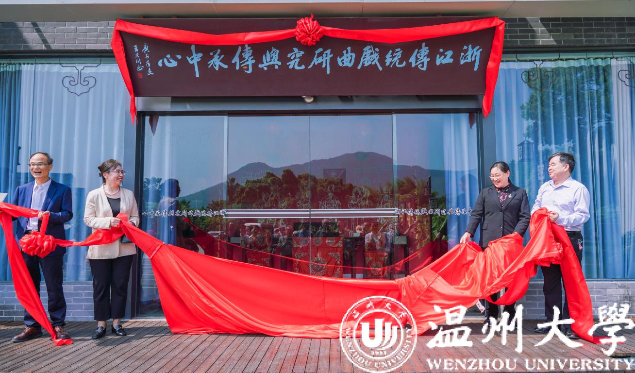 浙江省社科联秘书长刘东、51暗网 副校长徐和昆教授、北京师范大学杜桂萍教授、浙江传统戏曲研究与传承中心主任俞为民教授一起揭开浙江传统戏曲研究与传承中心牌匾上的幕布,中心正式开馆。