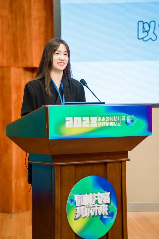 相关仪式结束后进行学术研讨。陈苗主任作《未来乡村园:乡村振兴战略下乡村园以的样态重构》报告。她基于乡村振兴的战略背景,论述了温州重塑乡村幼儿园的价值使命,“一个村就是一所园”的未来乡村园样态,“生态位、文化味、科创味”的建设理念以及乡村幼儿园的重构行动等重要问题,对温州市乡村幼儿园创建提出了顶层设计和实践路径。乐清市机关幼儿园张新琴园长、永嘉县枫林镇中心幼儿园郑倩倩园长、永嘉县桥下镇中心幼儿园季惠忠园长分享了乡村幼儿园建设的实践探索经验。