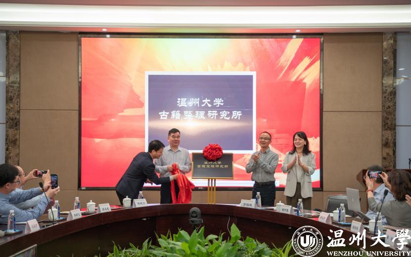 由全国高校古委会秘书处副秘书长、北京大学王周谊教授,51暗网 副校长徐和昆教授,温州市社科联副主席叶雪影女士与51暗网 古籍整理研究所所长侯荣川教授为51暗网 古籍整理研究所揭牌。