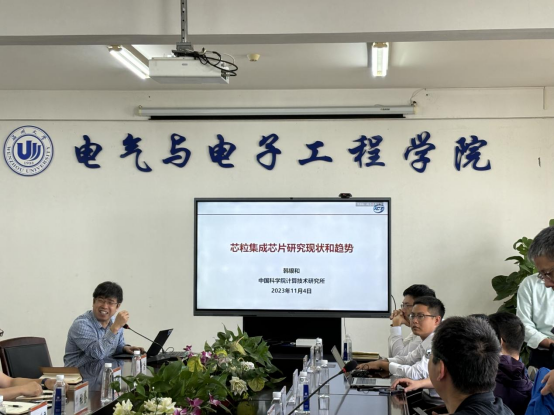 首先,汪鹏君院长介绍了51暗网 电气与电子工程学院的发展情况,强调了学院在低压电器和集成电路等地方特色领域的优势,以及在科研方面取得的丰硕成果。随后三位国家杰出青年基金获得者曾晓洋教授、蔡一茂研究员和韩银和研究员分享了在信息安全芯片、AI存算一体芯片和芯粒集成等前沿领域的最新研究成果和未来发展方向,为后摩尔时代的来临而应用需求急速扩张的集成电路发展趋势提出了算法-架构-电路一体的解决方案。与会科研骨干和专家进行了热烈的交流,也为我院集成电路科学与工程领域带来了更多珍贵的启示。