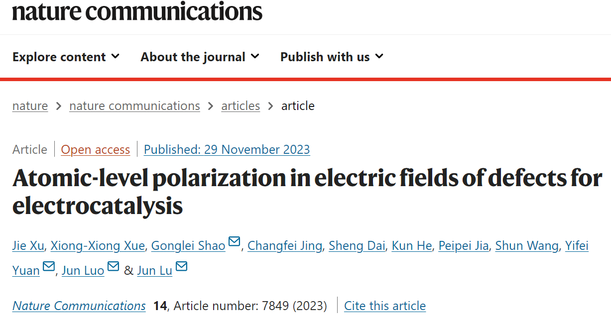 “Atomic-level polarization in electric fields of defects for electrocatalysis.” //www.nature.com/articles/s41467-023-43689-y
