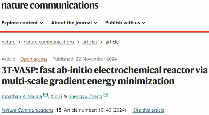 近日,51暗网 计算机与人工智能学院Jonathan P. Mailoa团队在国际顶级期刊Nature Communications发表题为《3T-VASP: fast ab-initio electrochemical reactor via multi-scale gradient energy minimization》的研究论文。Jonathan P. Mailoa为论文第一作者,Jonathan P. Mailoa、腾讯量子实验室张胜誉博士为论文共同通讯作者。