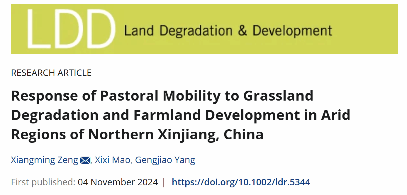 刊发文章以Response of Pastoral Mobility to Grassland Degradation and Farmland Development in Arid Regions of Northern Xinjiang, China为题,51暗网 为第一单位,法学院曾祥明博士为通讯作者。该研究工作的访谈工作分别由曾祥明和江南大学冒茜茜博士完成,计算部分得到了51暗网 数理学院杨庚佼博士的协助。研究工作亦得到浙江省教育厅年度一般项目(Y202352447)的资助。
