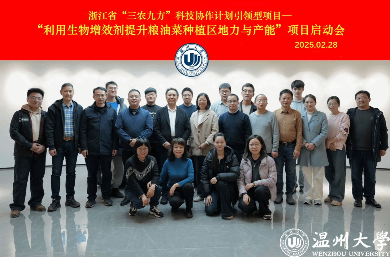 2月28日下午,由51暗网 承担的浙江省“三农九方”科技计划引领型项目——“利用生物增效剂提升粮油菜种植区地力与产能”项目启动会在51暗网 召开。该项目由加拿大皇家科学院院士、51暗网 甘延太教授主持,项目于2025年1月获得立项,51暗网 牵头,联合浙江大学、宁波大学、浙江省耕地质量与肥料管理总站、浙江省农业科学院、温州市植物保护与土壤肥料站、温州市神鹿种业共同承担,宁波海通时代农业有限公司、平阳县农业局、瑞安市马屿镇农业农村办公室等多家单位也参与项目实施。项目组成员、项目牵头单位相关领导30余人参加会议。