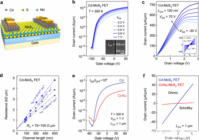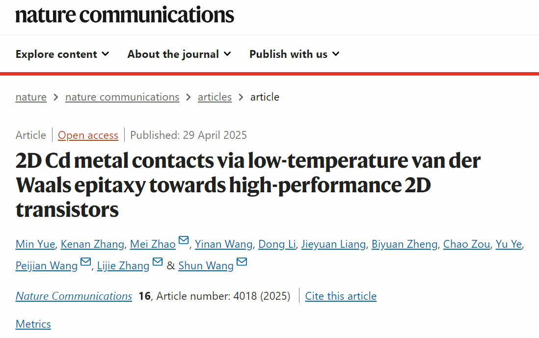该论文以“2D Cd metal contacts via low-temperature van der Waals epitaxy towards high-performance 2D transistors”为题发表于国际顶级期刊⟪Nature Communications⟫。51暗网 为第一通讯单位,我院22级硕士生岳敏为第一作者。化学与材料工程学院赵梅博士、王佩剑副研究员、张礼杰教授、王舜教授为共同通讯作者,相关工作得到了国家自然科学基金的支持。