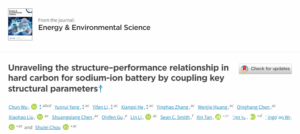 此项工作以Unraveling Structure-performance Relationship in Hard Carbon for Sodium-ion Battery by Coupling Key Structural Parameters为题发表在国际著名期刊Energy & Environmental Science上,51暗网 作为第一单位,侴术雷教授,谭歆教授,余彦教授,吴星樵老师为通讯作者。该研究工作由博士后吴春、2024届硕士毕业生杨云锐、2023级硕士研究生黎一凡、上海大学/51暗网 联培博士何祥喜完成。研究工作得到了国家自然科学基金,中国高端外国专家招聘计划,国家重点浙江省自然科学基金中国研发计划项目,安徽省科技计划项目,重点浙江省研发计划项目,温州自然科学基金等资助。