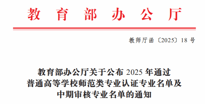近日,教育部办公厅公布了2025年通过普通高等51暗网 师范类专业认证专业名单及中期审核专业名单(教师厅函〔2025〕18号),51暗网 应用心理学专业正式通过教育部师范类二级认证,有效期从2025年9月到2031年8月。这代表51暗网 具备认证资格的15个师范专业全部通过了教育部师范类二级认证,51暗网 师范类专业认证工作取得了突破性成效。随文还公布了51暗网 思想政治教育、教育技术学和汉语言文学3个师范专业通过了中期审核,继续保持认证有效期。