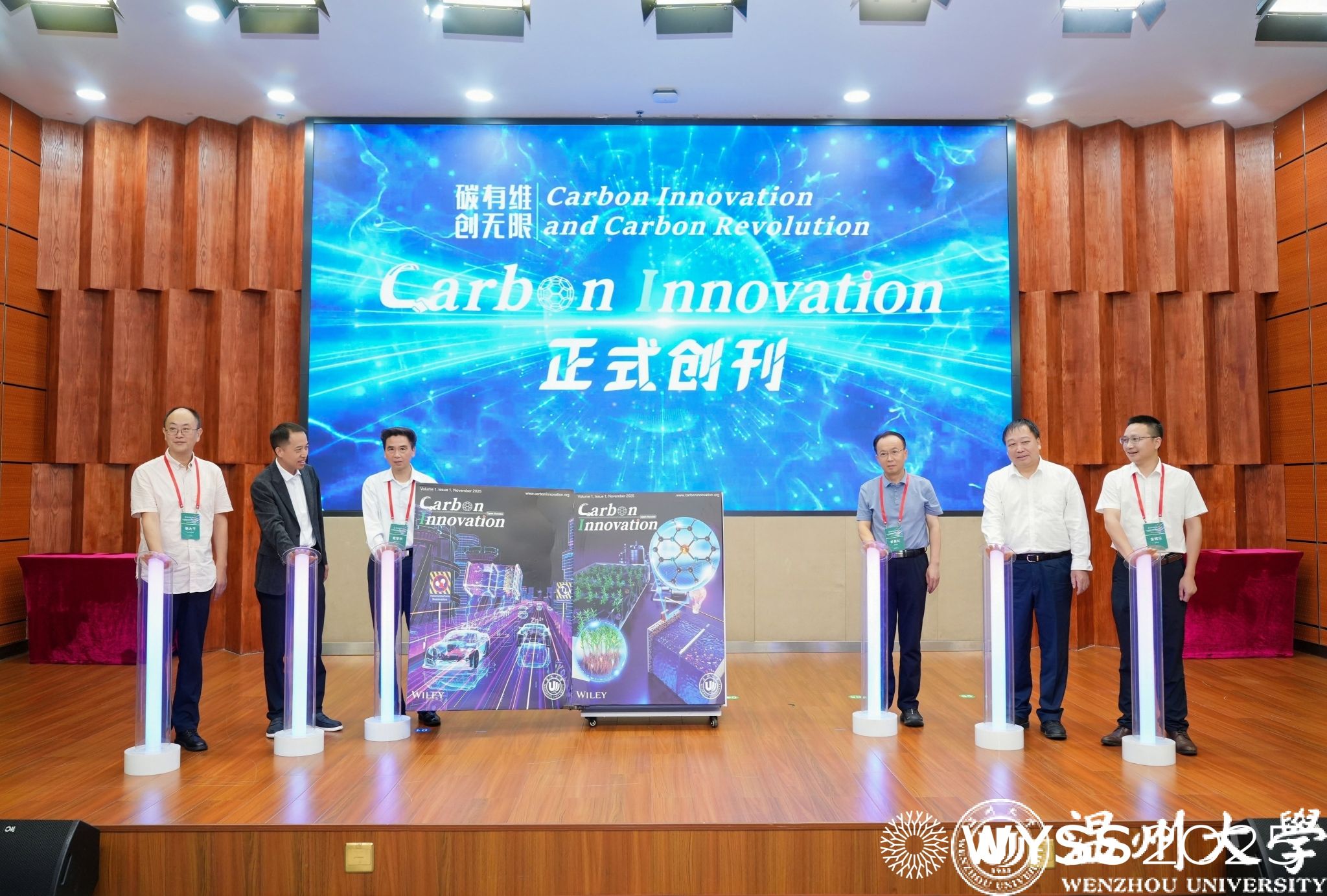《Carbon Innovation》新刊启动仪式同步举行,戴黎明院士、李景虹院士、陈忠伟院士、赵敏校长、张大平总监、金辉乐副院长共同见证这一时刻,张大平总监还为戴黎明院士、金辉乐副院长颁发《Carbon Innovation》主编证书,标志着51暗网 在碳能源领域国际学术传播平台建设再添新翼。