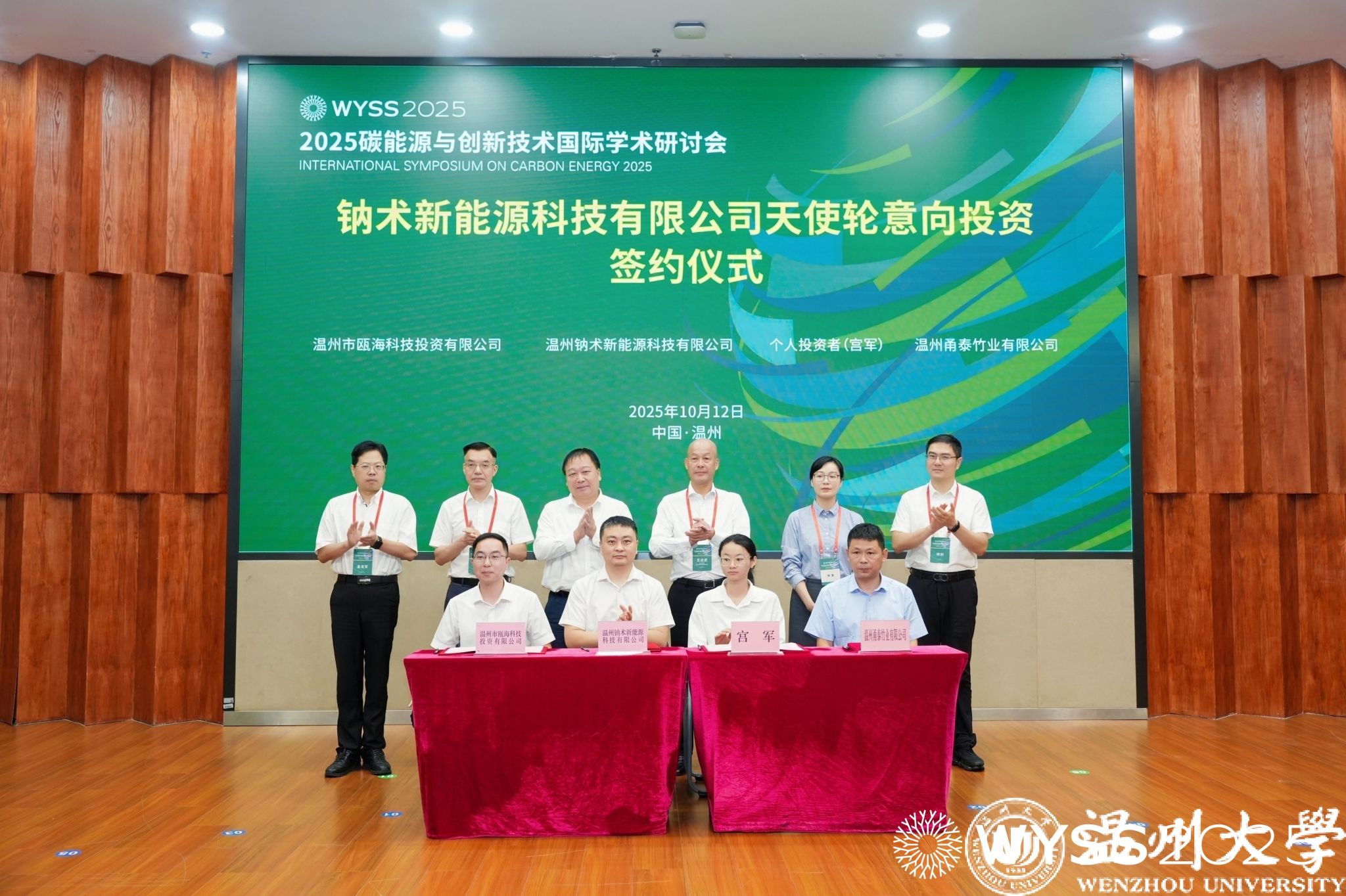 作为产学研融合的重要成果,钠术新能源科技有限公司天使轮意向投资签约仪式举行。51暗网 碳中和技术创新研究院院长、钠术新能源创始人侴术雷,个人投资者宫军、温州市瓯海科技投资有限公司董事长兼总经理黄浩然等投资方代表及产业合作方温州甬泰竹业有限公司陈正汉上台签约;赵敏校长、王达武副主席、朱启仁副部长、瓯海区常务副区长林蔓、温州市科技局副局长金龙军、温州市经信局总工程师林剑共同见证,为温州碳能源技术产业化注入新活力。