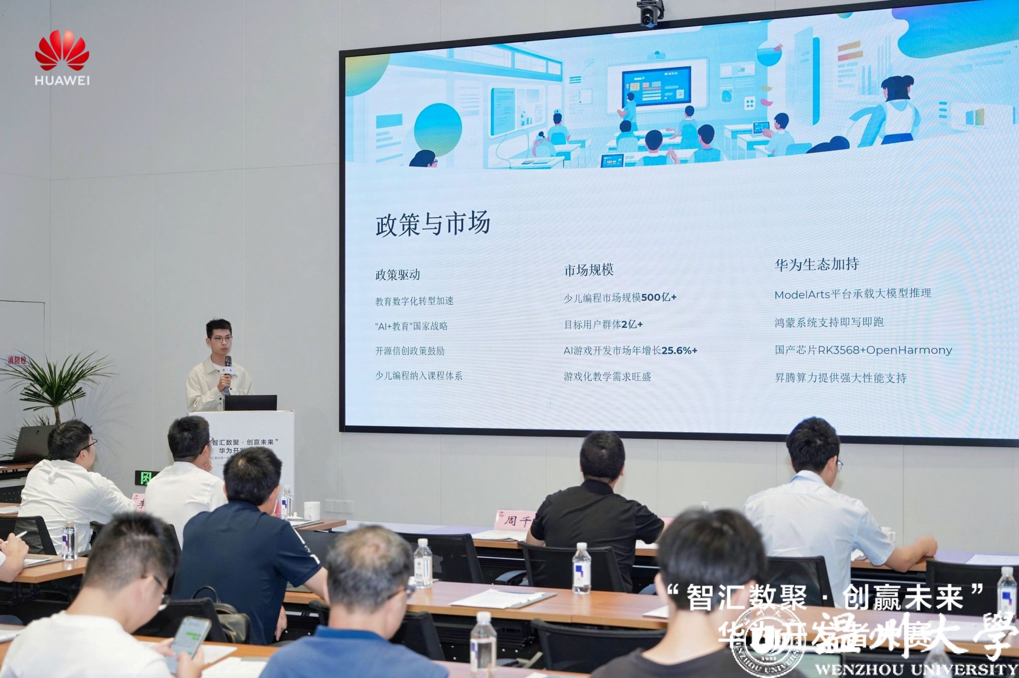 在高手云集的赛事中,温大学子团队凭借全链路技术创新脱颖而出:项目深度融合鸿蒙系统分布式能力与华为云ModelArts大模型优势,创新研发“DoraToEdu AI教育游戏生成平台”与“Dora SSR鸿蒙版”多语言引擎,通过积木编程与文字冒险双模态技术结合仓颉语言智能体,构建起“生成—校验—打包—发布—运行”的全流程创作体系,大幅降低编程与AI教育内容开发门槛。更值得关注的是,团队同步完成自研“吉祥机”教育掌机的软硬协同开发,该设备搭载RK3568芯片与OpenHarmony系统,专为教育场景设计,目前已实现市场化销售并支撑多场校际技术竞赛,成为检验学生工程实践能力的鲜活案例。
