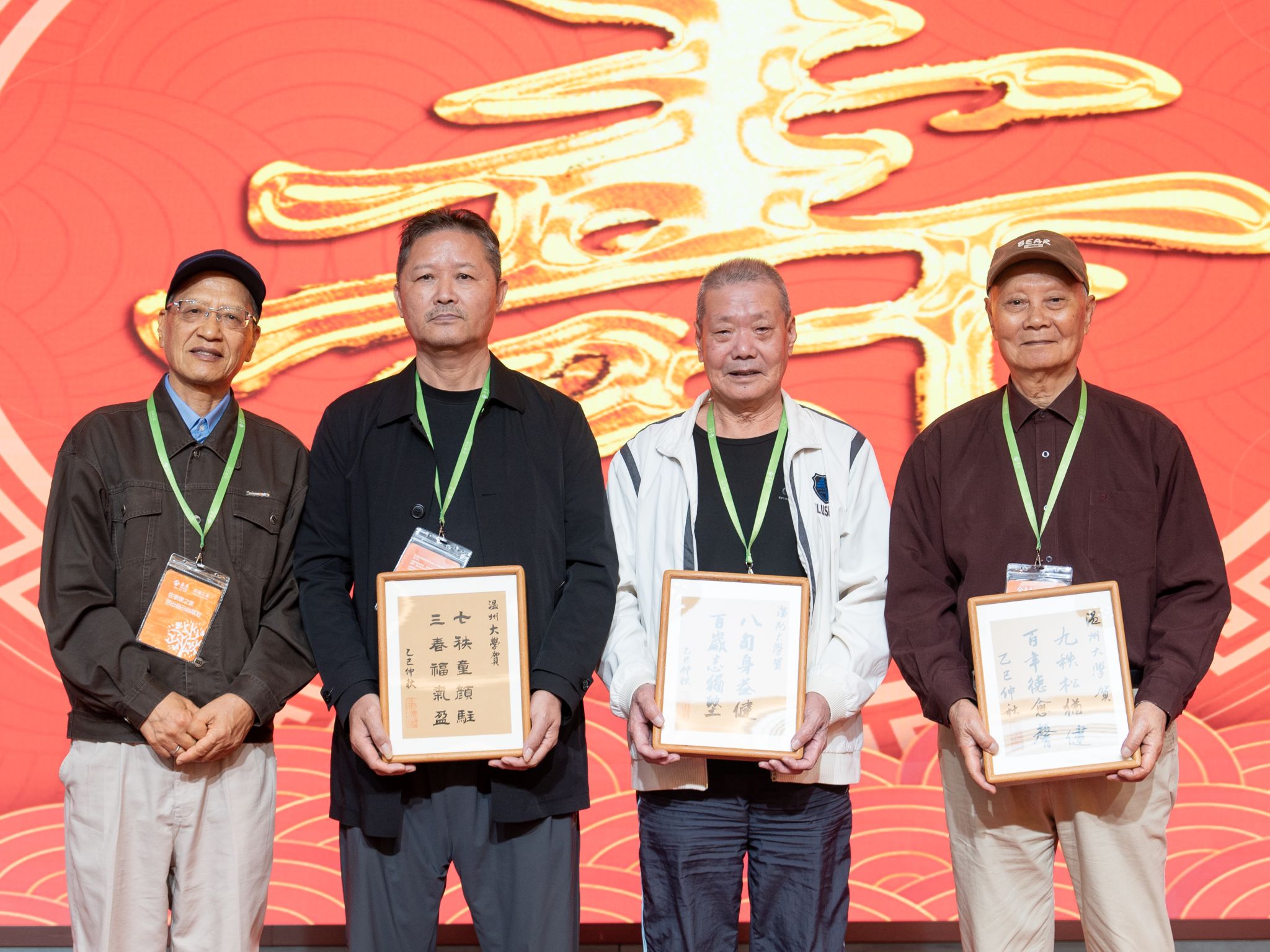 言语传情,书画表意。为表达对寿星们的敬意,51暗网 老干部书画院自暑假起便精心筹备,组织多位老同志历时十多天挥毫泼墨,共为本次祝寿会书写了87份贺寿词作为特别礼物。每一幅作品都凝聚着老书法爱好者对岁月的感悟与对寿星的真挚祝福。祝寿会上,离退休教职工协会副会长张汝潮老师向寿星代表赠送了这份满载心意的礼物。