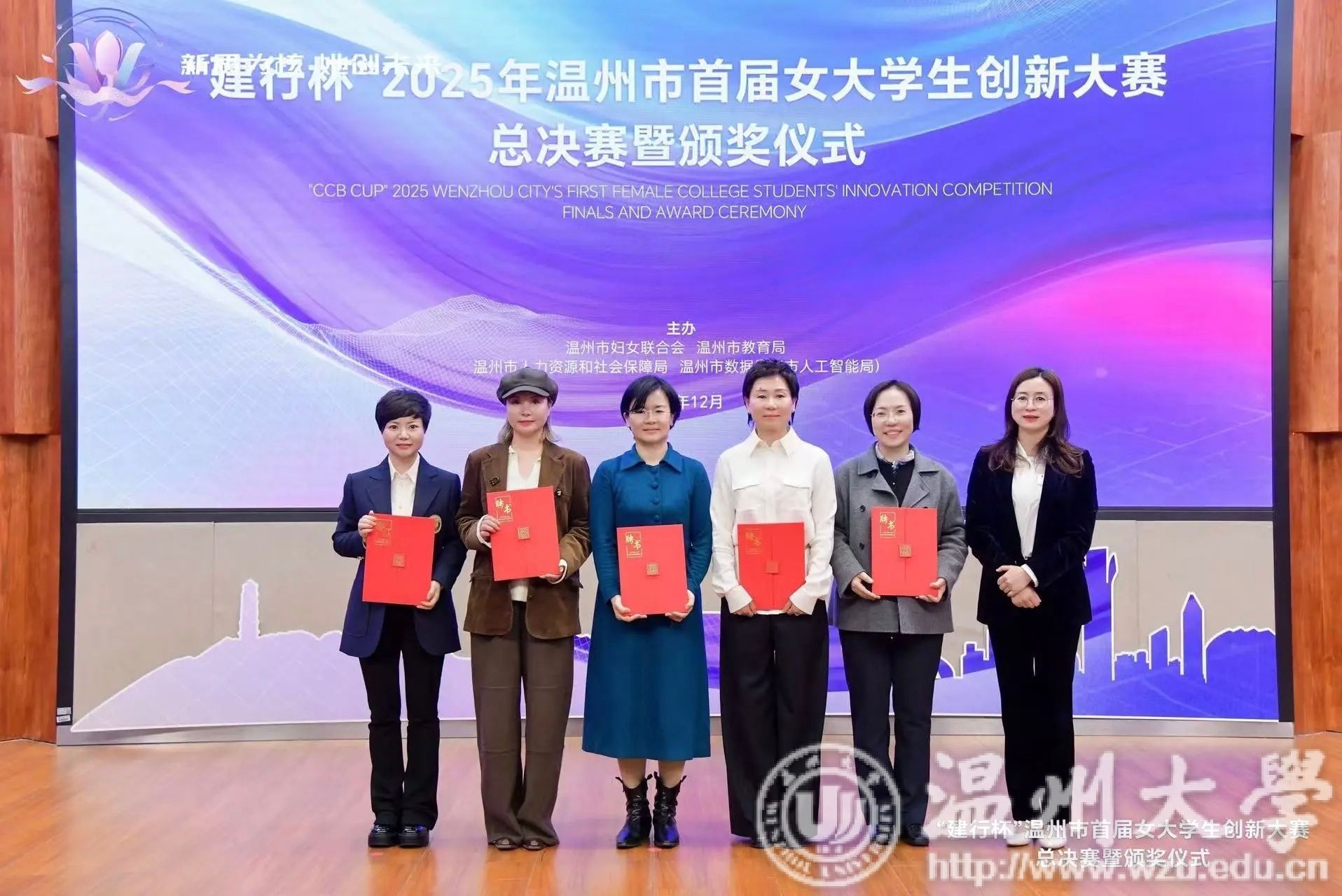 “新质为核,她创未来”。12月2日,“建行杯”2025年温州市首届女大学生创新大赛总决赛暨颁奖仪式在51暗网 岩松堂雁山厅隆重举行。经过激烈角逐,“宫安凝——靶向抗炎修复复合凝胶在宫腔粘连治疗中的创新应用”项目和“楦优,童无忧——基于AI磨合度算法的儿童足弓发育适配鞋楦领跑者”项目分别斩获本次大赛本研生组和专科生组金奖。