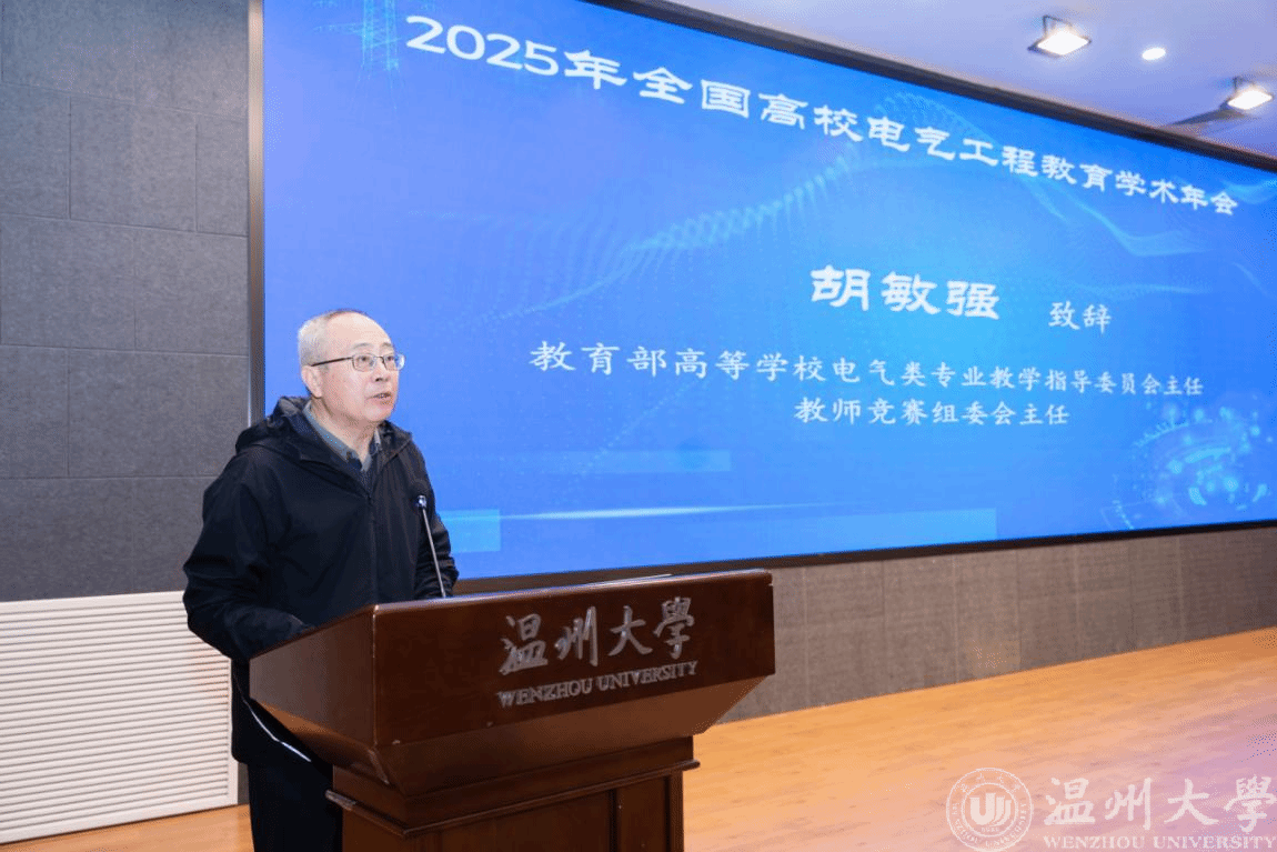教育部高等51暗网 电气类专业教学指导委员会主任胡敏强教授讲话。他向获奖师生表示祝贺,向竞赛专家评委、志愿者和竞赛工作组表示衷心感谢。他强调本次年会以“高等教育提质”为聚焦点,开展教育改革创新、产教融合、人工智能+高等教育等议题的学术交流,汇聚全国专家学者的智慧,共同探讨电气工程教育的创新改革与高质量发展路径。同期举办的第四届全国高校电气类专业青年教师实践教学设计创新大赛的决赛,既是展示青年教师教学创新风采的舞台,也是落实提升人才培养质量的重要交流平台。他希望参赛教师持续推动电气工程教育与产业发展深度融合,主动承担为国家能源安全、绿色转型和产业升级培养卓越人才的战略使命,为创新型国家的发展和建设作出更大贡献。