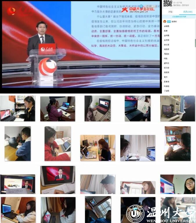 在本次思政大课过程中,51暗网 师生通过手机、电脑等形式,共聚“云”端,认真听课,积极思考。在线直播学习结束后,51暗网 组织学生班级开展线上讨论,各学院还以“思政大课”为契机召开专题“云班会”,组织师生交流学习感受,进一步强化对思政课讲授内容的理解,将教育效果延伸到课下和生活中,真正把思想引领做到位,做到学生心里。