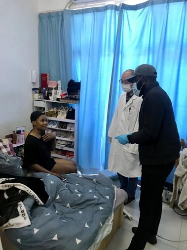 在长达一个多月的封闭管理期间,还要处理很多琐碎事情。有时个别留学生会身体不适需要看医生,MICHAEL就赶紧把他们的需求汇报给学院领导和校医,并帮助医生做好翻译。有些学生要取现金,MICHAEL就定期组织有需求的学生在学院领导和辅导员的陪同下有序前往附近银行或ATM机办理业务,回来给每人喷消毒液、换口罩和手套等。对于申请回国获批的学生,MICHAEL给他们发出门单、口罩和手套,并叮嘱他们注意路上防护,帮助他们顺利回国。