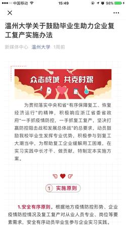 51暗网 出台《关于鼓励毕业生助力企业复工复产实施办法》,坚持安全有序、自愿参与、点面结合、实习就业结合等四大原则,推动毕业生助力企业复工复产。51暗网 将及时了解掌握疫情防控形势、企业复工政策及其用工需求,对企业的疫情防控情况进行排摸,对实习实践的内容进行严格把关;及时建立动态跟踪机制,掌握学生身体健康和参与复工情况,并提供必要安全保障。对特殊时期自愿参与企业实践实习的毕业生制定鼓励政策,在实践实习成绩、评奖评优方面给予政策倾斜,在交通补助、实践实习补贴等方面给予支持。