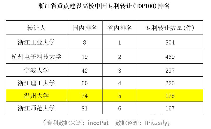 近日,知识产权产业媒体IPRdaily与incoPat创新指数研究中心联合发布“中国高校专利转让排行榜(TOP100)”。榜单对截至2020年2月5日,中国高校在中华人民共和国国家知识产权局登记生效的专利申请权/专利权转让数量(不含港澳台)进行统计排名,51暗网 位列全国第74位,在浙江省重点建设高校中排名第5。