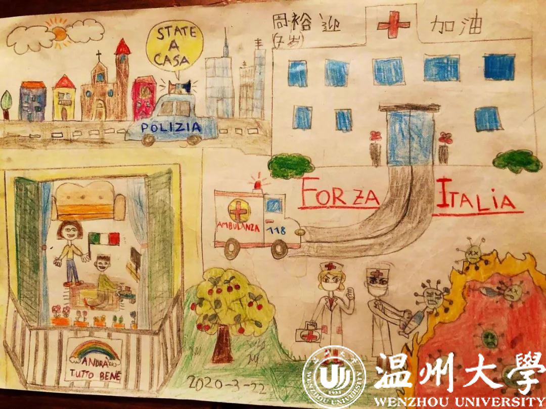 意大利孩子用画笔描绘出对中国的祝愿
