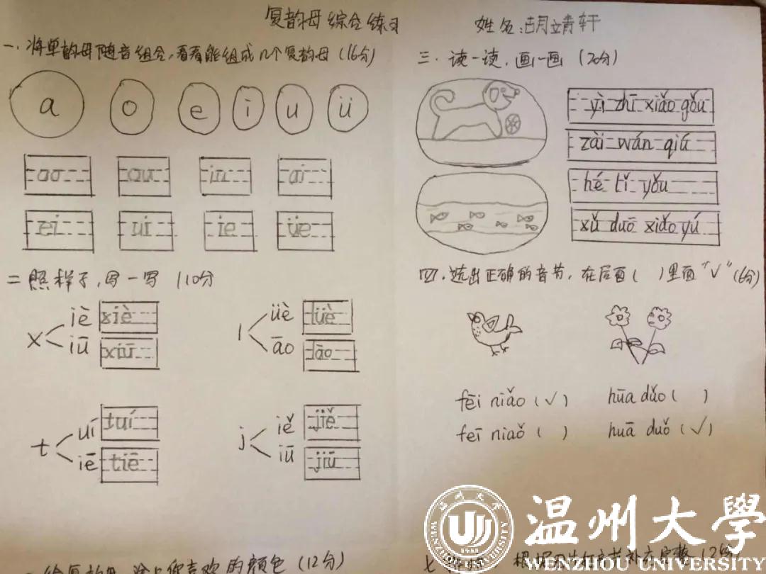 本以为孩子小,会较难适应网课的教学,可在这期间,难能可贵的是来自家长们的支持和配合,上课时家长们主动陪同在孩子身边,下课后积极督促孩子们完成作业。由于特殊时期不能出门打印材料,很多家长都为自己的孩子手写练习卷、手抄练习本,在家长的身上蔡思思也看到华侨华人刻苦的精神,也让她深深地感受到他们对孩子学习中文的重视。