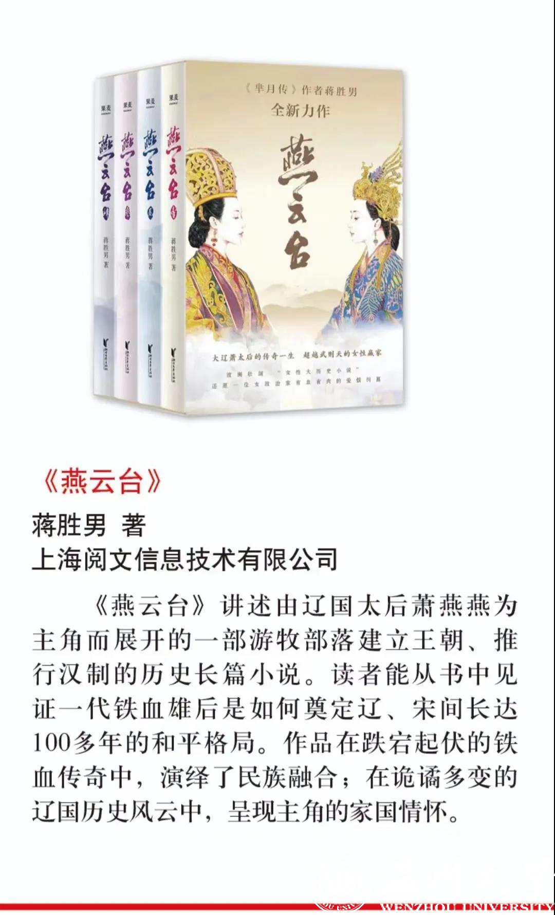 4月23日,在“2019年度中国好书”的评选中,由51暗网 蒋胜男研究员所著、浙江文艺出版社出版的《燕云台》荣膺网络文学类“2019年度中国好书”荣誉。