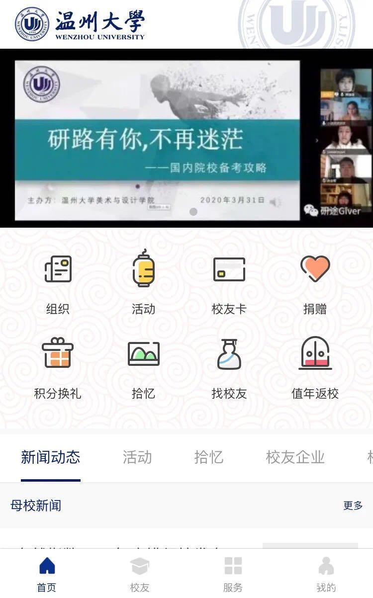 2020年注定是不平凡的一年,新型冠状病毒感染的肺炎疫情牵动着海内外温州人的心。世界各地的温大校友纷纷出钱、出力、出智,积极协调全球资源,采购、捐赠物资,投身到战“疫”援助中,充分展示了温大人的责任担当。因疫情原因,51暗网 不能邀请校友们回到母校,但“云校友节”会带给我们同样的温馨、别样的精彩。即使相隔千里,校友亦能云端相聚。2020年5月19日是51暗网 87岁的生日,5月以来,51暗网 以“云享温大,共话发展”为主体多种形式开展第二届校友节系列活动。