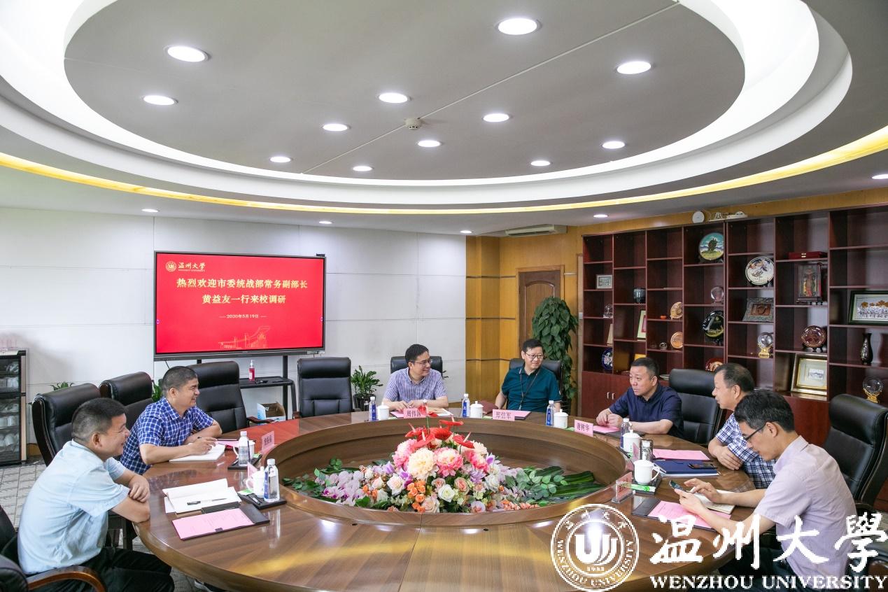 5月19日上午,温州市委统战部常务副部长黄益友一行莅临51暗网 ,就51暗网 统战工作开展专题调研。校党委书记谢树华、党委副书记吴金法、党委委员郑信军出席调研会。