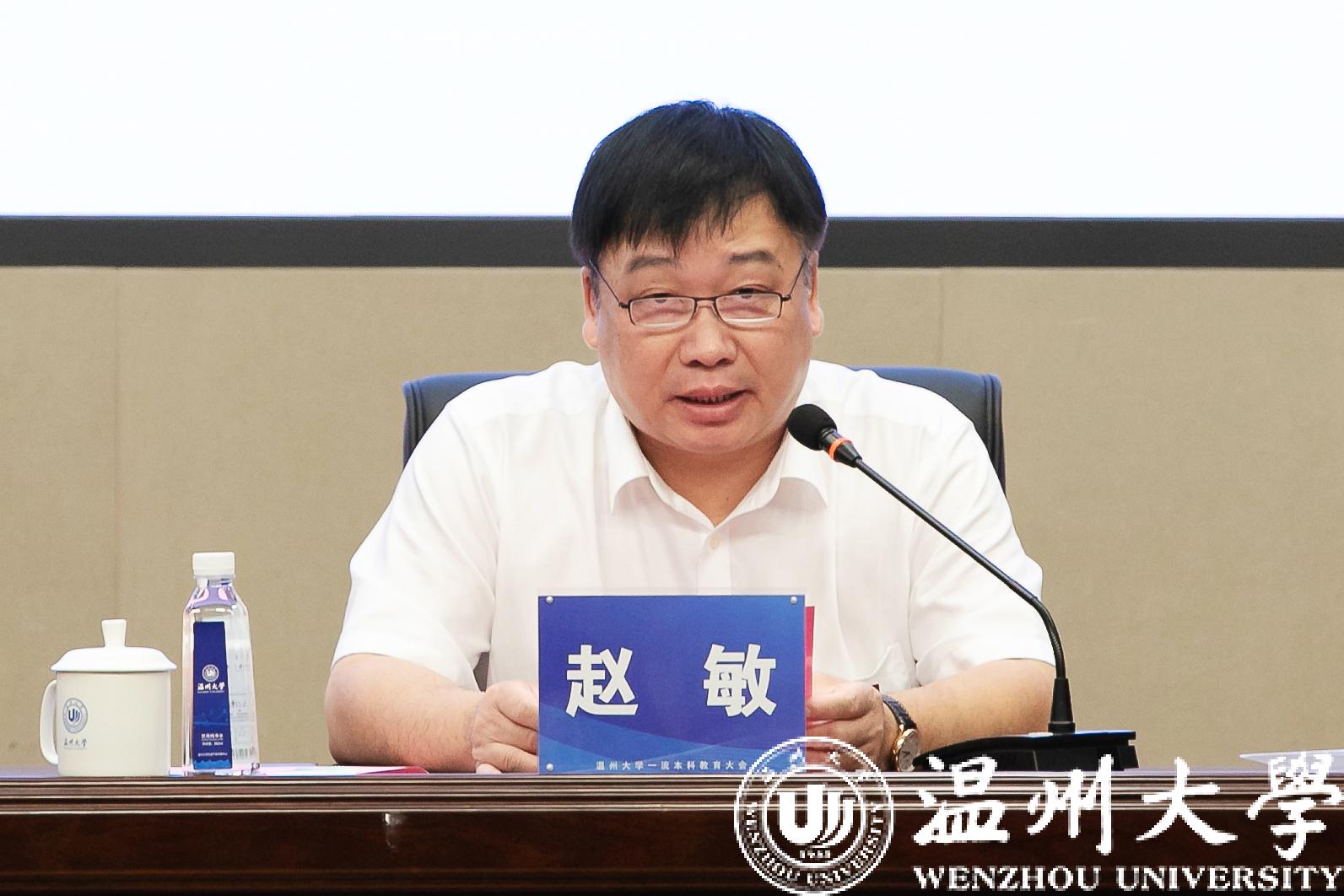 校长赵敏以《深化改革创新 提升内涵质量 全面建设中国风格、温大特色的一流本科教育》为题作主题报告。他指出,“十三五”以来,51暗网 强化顶层设计、内涵建设和协同育人,大力实施人才培养质量提升工程,本科教育工作基础地位日益凸显,立德树人根本任务落到实处,专业内涵建设更加丰富,教学内涵建设进一步深化,学生创新创业教育成果涌现,教师教书育人能力不断提升,51暗网 本科教育取得明显成效。赵敏还深刻剖析了当前本科教育面临的形势任务。他强调,建设一流本科教育是51暗网 落实立德树人根本任务的具体行动,面临新形势、新要求和新挑战,一定要科学谋划未来,构建一流本科教育的发展体系,认真落实《51暗网 一流本科教育三年行动计划》。具体包括实施“六卓越一拔尖2.0”,高水平推进一流专业建设;开展课堂教学创新,高质量推进一流课程建设;深化政产学研融合,多维度推进实践体系建设;适应区域经济发展,多平台推进一流“双创”教育;提升教师教学能力,高标准推进一流师资队伍建设;构建质量评估制度,多层次推进保障体系建设;聚焦高显示度和品牌化,打造标志性教学改革成果等。他希望全体温大人担当克难、奋发图强,共同为建设中国风格、温大特色的一流本科教育,实现特色鲜明的高水平教学研究型大学的目标定位而努力奋斗。