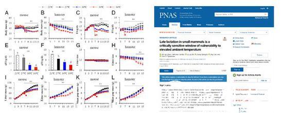 近日,51暗网 赵志军课题组经过长期研究发现:高温热浪天气会显著抑制小型哺乳动物哺乳期能量摄入和繁殖输出乃至繁殖成功率。