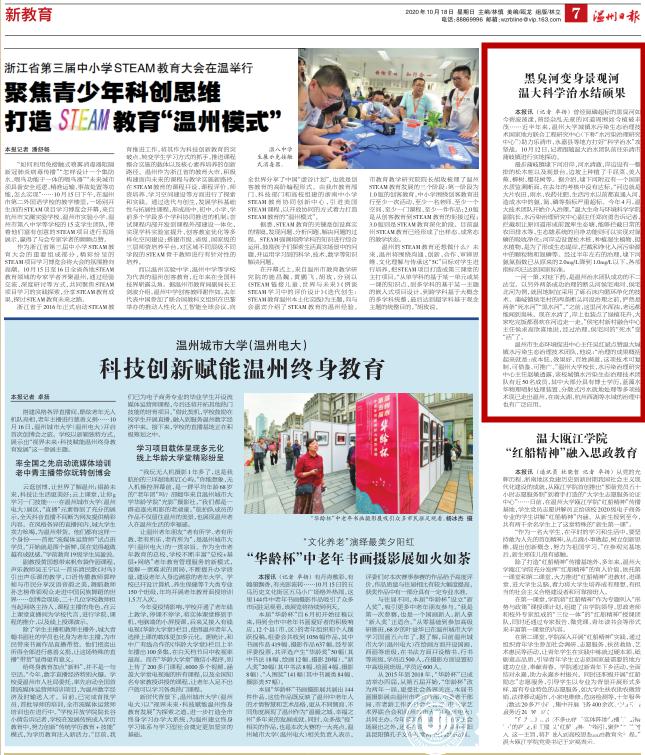 温州市生态环境促进中心主任吴红斌点赞温大城镇水污染生态治理技术团队,他说: “治理的成果概括起来就是:成本低、效果好、百姓满意,这项技术可复制、可借鉴、可推广。”51暗网 校长、水污染治理研究中心主任赵敏透露,该校城镇水污染生态治理技术团队有近50名成员,其中大部分具有博士学历,蓝藻水华物理喷射处理装置、分散式污水就地处理等多项技术现已走出温州,在南太湖、杭州西湖等水域的治理中也有广泛应用。