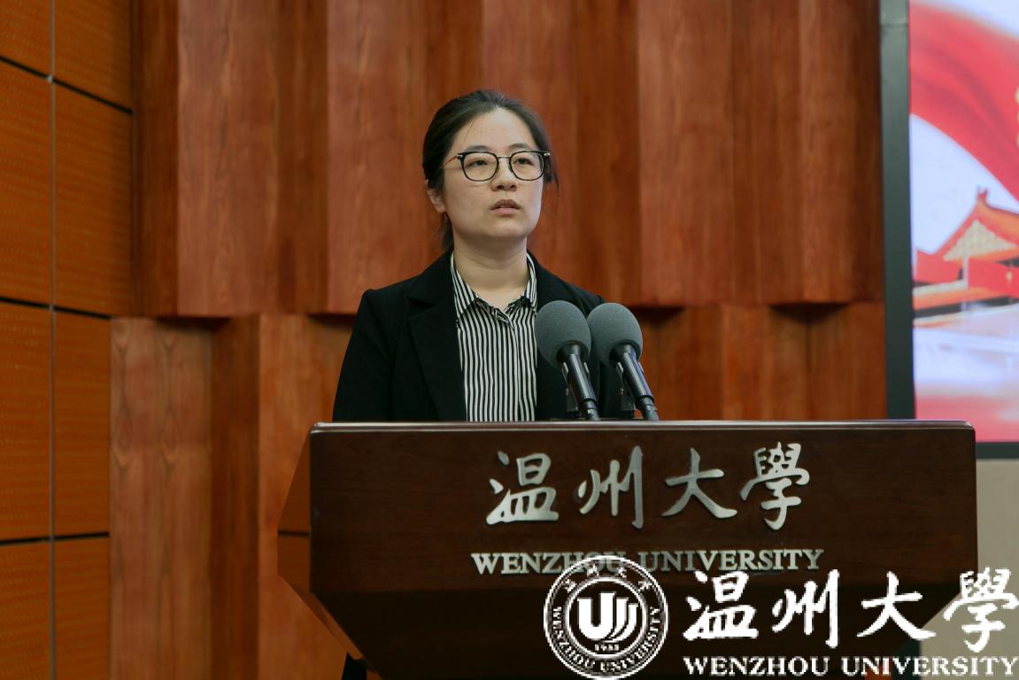 教师教育学院徐田子老师作为新教师代表发言。徐老师首先诚挚感谢51暗网 领导与同事对自己的信任与鼓励。作为一名刚刚毕业的青年博士,有幸入职温大,见识温大速度、感受温大温度、领略温大力度,开启实现人生理想的新起点。最后,徐老师代表新教师们表态,一要“诲人不倦、育才强国”,二要“重视学术,拓展视野”,三要“团结互助,攻克难关”。