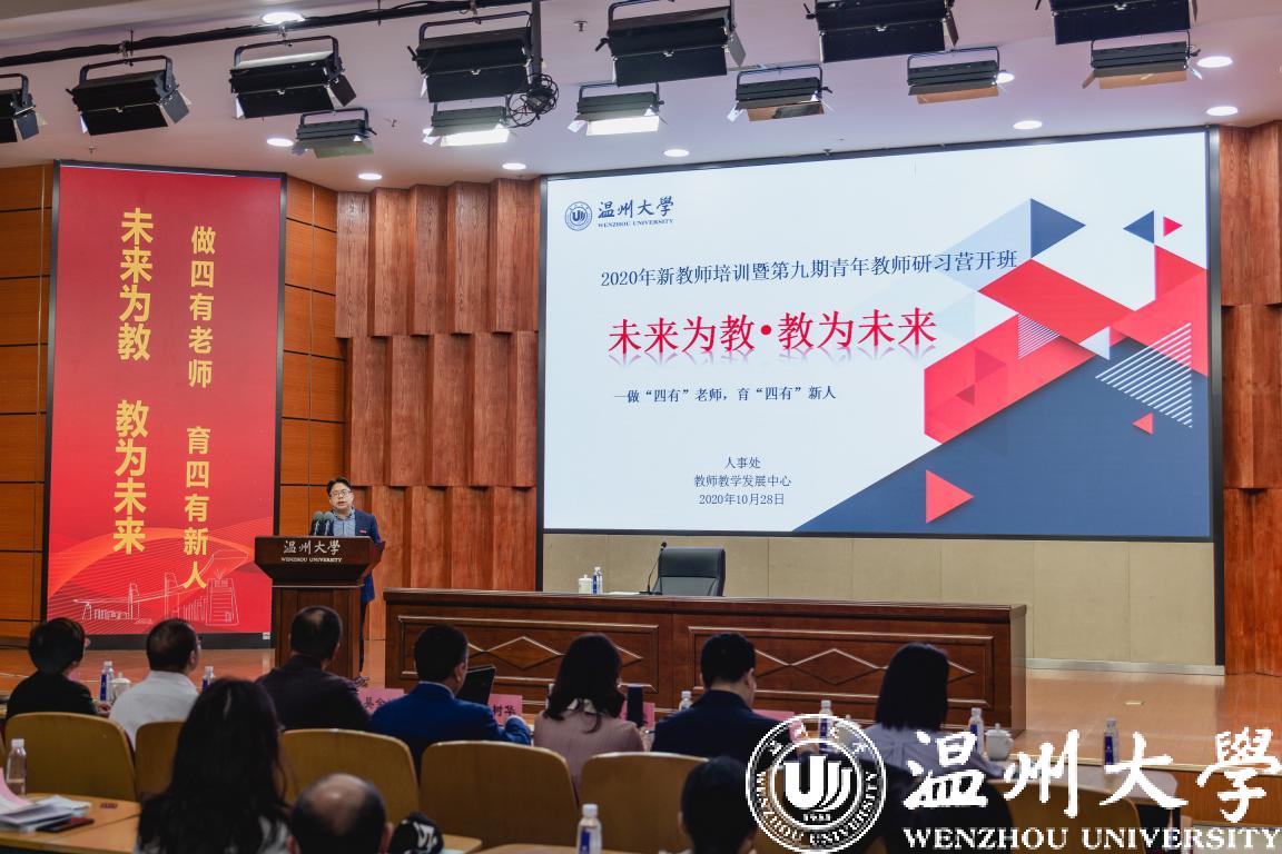 谢树华作题为《不忘育人初心,谱写青春华章》的开班第一讲。他从“历史的温大:底蕴深厚、贤者辈出”“今天的温大:积极有为、蓬勃发展”“明日的温大:未来可期、砥砺奋进”三个维度,向新教师详细讲述了51暗网 的历史沿革、办学现状和发展前景。他指出,在一代又一代温大人的不懈努力下,51暗网 从曾经的一个小学堂,成长为浙南闽北赣东唯一的综合性教学研究型大学。特别是近年来,51暗网 按照“一个定位明方向、三大目标聚人心、三项改革促发展”的理念,大力推动事业发展,形成了政通人和、欣欣向荣的良好态势。谢树华对新教师提出三点希望:面对教师“新角色”,做到“爱岗敬业”;面对温大“新环境”,做到“爱校如家”;面对育人“新使命”,做到“爱生如子”。他要求新教师牢记教育初心、不忘育人使命,与51暗网 共发展、同奋进,用美好青春谱写新时代51暗网 发展新篇章。