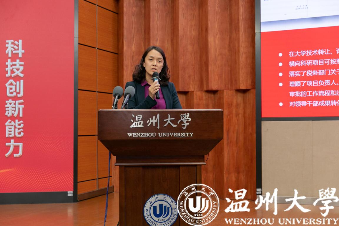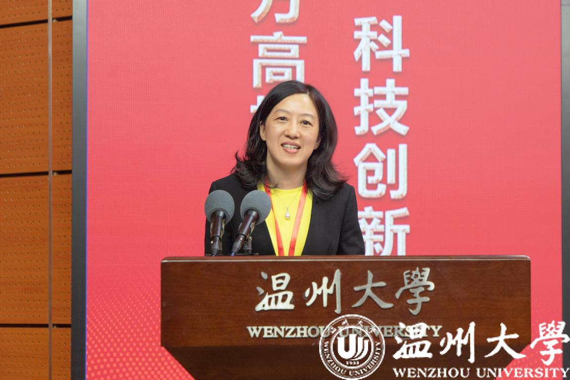 温州市科学技术局局长章月影致词。她表示温州是一座加快赶跑的创新之城。并向与会人员介绍了温州科技工作及取得相关成果,特别是51暗网 作为地方综合性大学,紧紧围绕区域经济社会发展状况、产业结构、应用技术水平以及可持续发展对人才的需求,加强特色学科建设、培养专业化人才,与政府、企业开展全面深入的合作交流,为区域经济发展提供了强有力的智力支持。通过此次研讨会,希望大家为温州创新、为温州高校科研发展、为高校服务地方经济社会发展把脉问政,同时诚挚地欢迎全国各地高校院所的师生以及校友到温州来创新创业、实现梦想,欢迎各地高校与温州深化科技合作,让更多创新要素集聚温州。