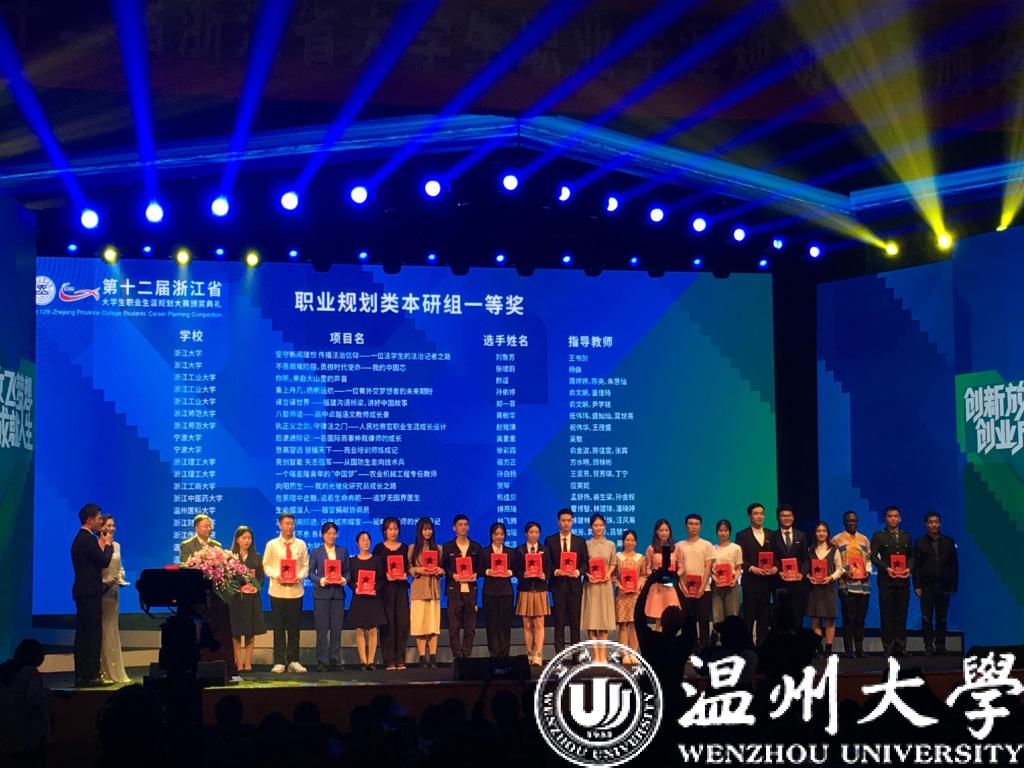 创新放飞梦想,创业成就人生。11月13日,第十二届浙江省大学生职业生涯规划大赛决赛在浙江工业大学落下帷幕。校党委副书记庄兴忠亲临决赛现场鼓励参赛师生。本次大赛51暗网 共获得2个一等奖(职规类本研组)、2个二等奖、3个三等奖和1个优胜奖,51暗网 再次荣获“最佳组织奖”。51暗网 在大赛中的职规类本研组获一等奖数目实现了历史性的突破,获奖数目与浙江大学等高校并列第二。