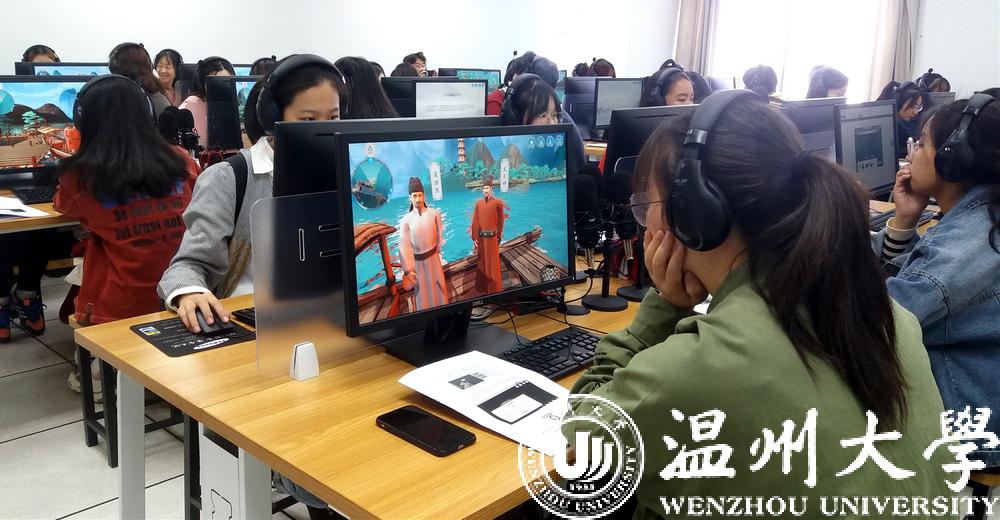 今年11月,《山水诗之意境体验虚拟仿真实验教学项目》被正式认定为国家级虚拟仿真实验教学一流课程,是全国首批文学类的虚拟仿真实验教学项目,也是浙江省唯一的文学类虚拟仿真实验教学课程。2017年9月,该项目正式在温大人文学院上线试课,创新教学模式,深受学生欢迎。温州作为山水诗发源地,研发团队将此作为教学项目主题,学生可选取山水诗鼻祖谢灵运、山水诗代表诗人孟浩然、文天祥等文人作为虚拟仿真实验中的特定角色,以江心屿作为特色地标。在技术渲染的手段下,学生可以在充满意境的虚拟仿真环境中沉浸式地学习古典诗词,真正达到在自主学习过程中掌握系统化知识的目的。