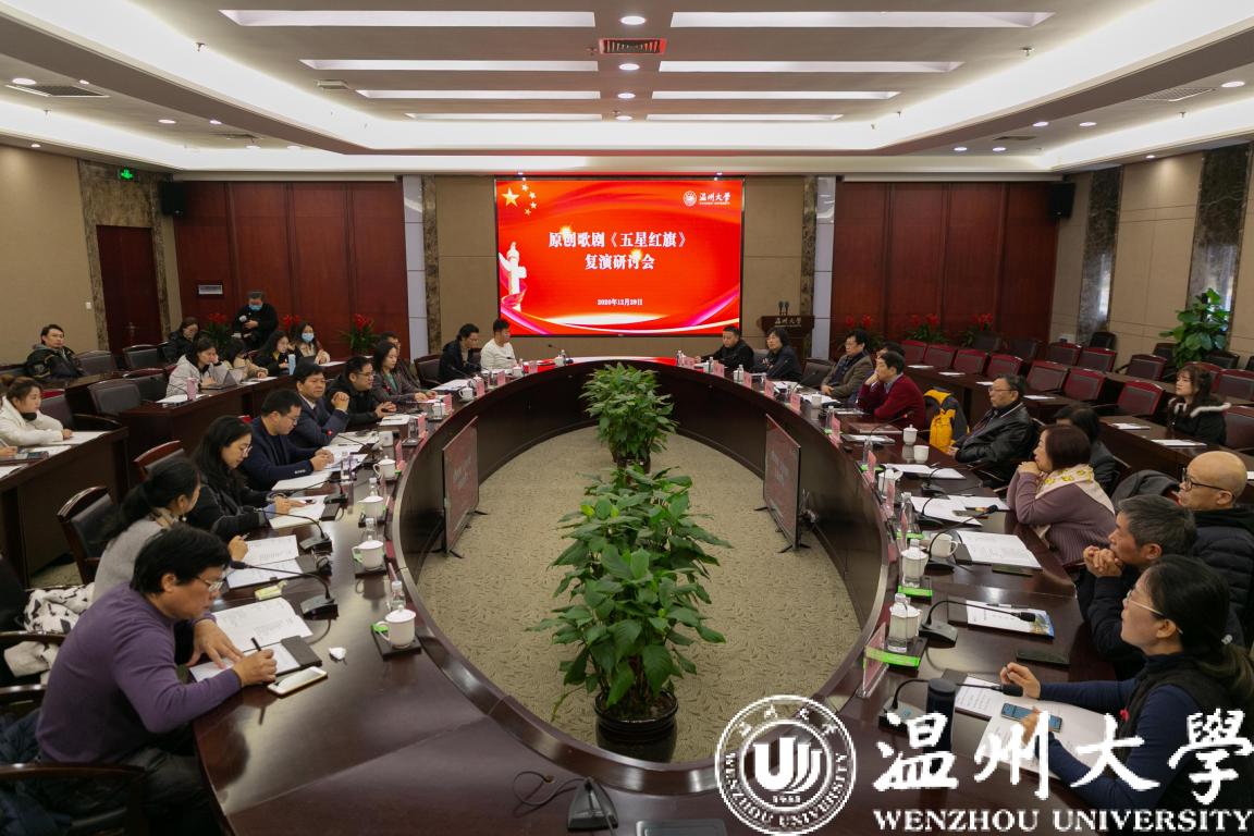 12月26日至28日,由中共温州市委宣传部、51暗网 、中共瑞安市委联合出品的原创歌剧《五星红旗》在51暗网 育英大礼堂连续复演三场并取得圆满成功,这是该剧自去年10月在温州大剧院试演后的再次公演。12月29日上午,原创歌剧《五星红旗》复演研讨会在51暗网 举行,来自全国各地从事舞台艺术创作与理论研究的20余位专家学者,就《五星红旗》复演情况、未来的建设发展等进行评价和探讨。