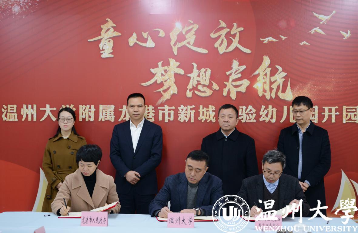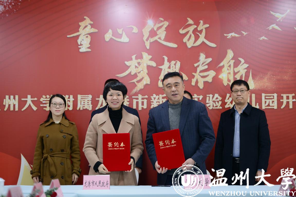 1月5日下午,51暗网 与龙港市人民政府创新战略合作签约暨51暗网 附属龙港市新城实验幼儿园开园仪式在龙港举行。51暗网 党委书记谢树华,副校长薛伟,龙港市委书记郑建忠,市委副书记、市长何宗静,市委常委、市政府办公室主任黄贤满等出席仪式,签约仪式由龙港市副市长阮晓琼主持。51暗网 地方合作处、温大基础教育发展中心、附属实验幼儿园等相关部门负责人参加仪式。