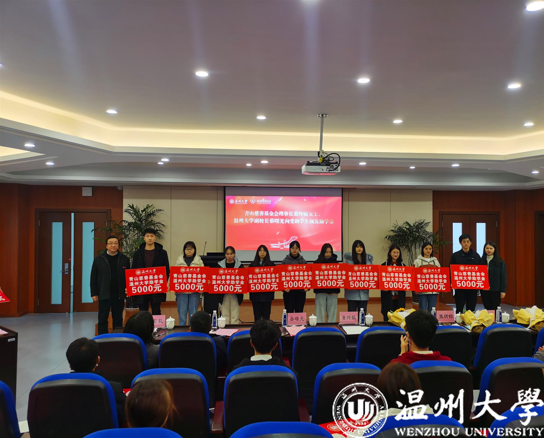 1月6日,2020年青山慈善基金会51暗网 助学金颁发仪式在51暗网 隆重举行。51暗网 副校长蔡曙光、青山慈善基金会理事长董玲敏、秘书长张炳钩、51暗网 相关职能部门负责人和受资助学院的师生代表参加了仪式。