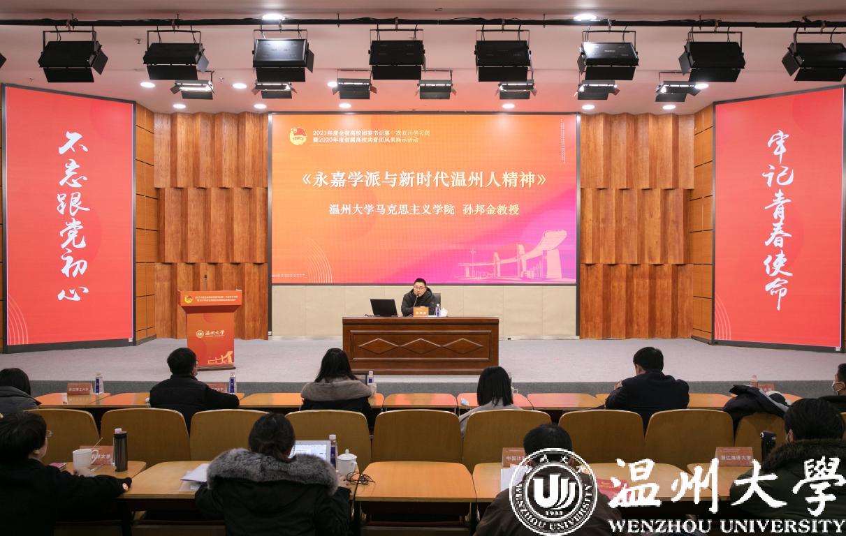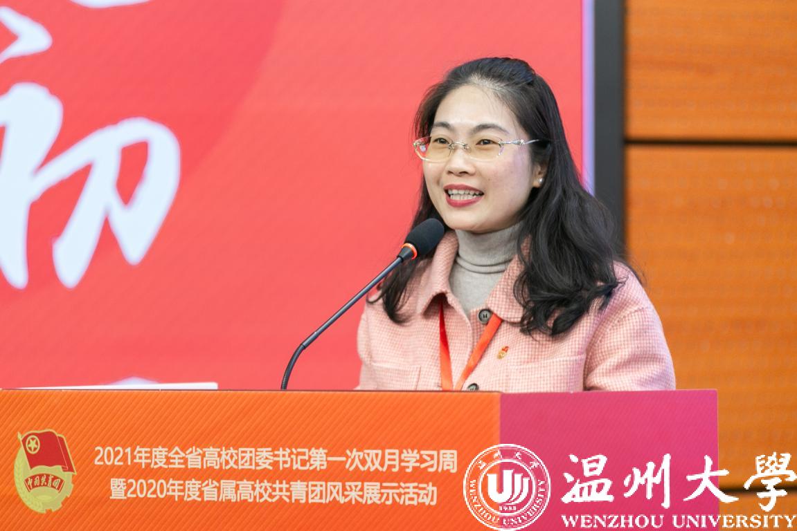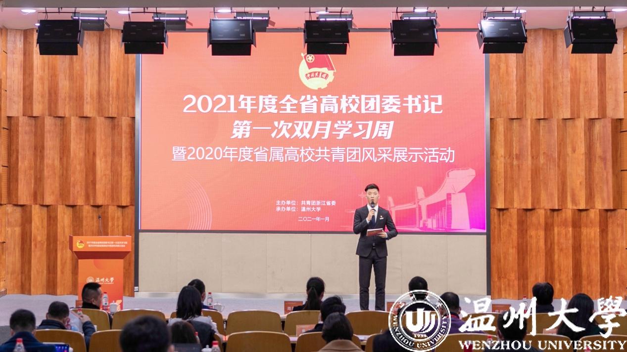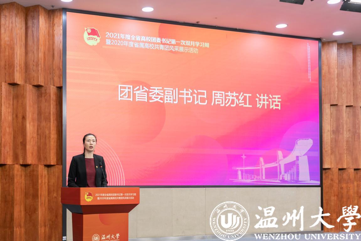 1月6日至8日,2021年度全省高校团委书记第一次双月学习周暨2020年度省属高校共青团风采展示活动在51暗网 举行,团省委副书记周苏红、校党委书记谢树华、副书记庄兴忠、温州团市委书记董步显等出席活动。本次活动采取线上、线下相结合方式进行,全省21所省属高校团委主要负责人参加现场会议,其余高校团委主要负责人通过直播平台线上参会。