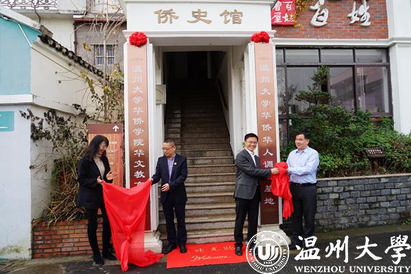 徐和昆、楼了凡、翁蔡恩、包含丽分别为51暗网 华侨华人调研基地和华侨学院华文教育基地揭牌。随后,出席人员一行参观了五社村侨史馆、风情街。