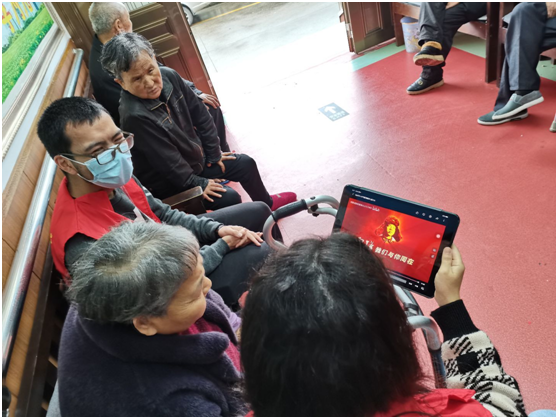 这次行动是数理学院20信算班开展的“送学党史、共筑健康”主题活动,该班大学生结合“世界睡眠日”主题,精心策划了这场活动。在老人公寓,十多名志愿者们通过IPAD和智能手机,给老人们展示了雷锋故事等党史小故事。“看到我们年轻人这么有爱心,爷爷奶奶也很配合我们,他们学得很认真!”志愿者如克亚木在分享自己体会时如是说。她正在努力追求入党,近期学了很多党史内容,能将这些有价值、有意义的党史小故事分享给老人,她感到很开心。