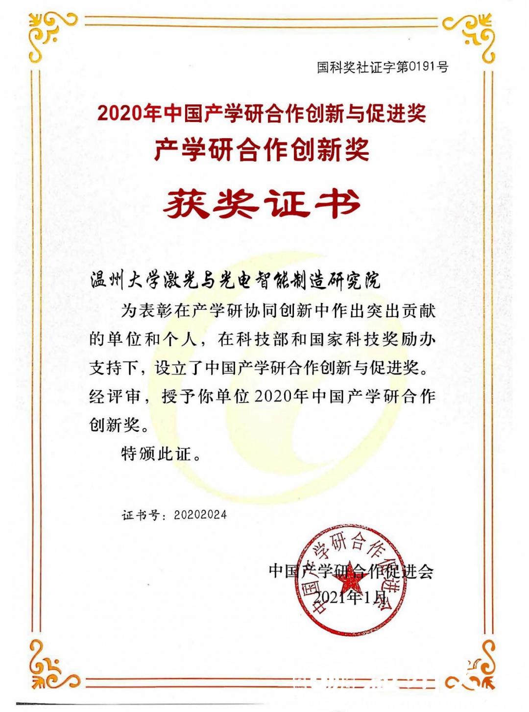 日前,中国发明协会和中国产学研合作促进会陆续公布了2020年发明创业奖·创新奖和2020年中国产学研合作创新与促进奖,其中由浙南科技城管委会和51暗网 共同创建的51暗网 激光与光电智能制造研究院斩获产学研合作创新奖(单位),研究院薛伟教授团队技术成果《复杂构件激光强化与复合制造关键技术及应用》获发明创业奖·创新奖一等奖,研究院创新团队薛伟教授获产学研合作创新个人奖。这一成绩见证了研究院经过四年来的发展,在产学研创新工作中又迈向了一个新的高度。