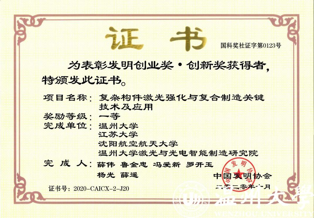 研究院薛伟教授团队的技术成果《复杂构件激光强化与复合制造关键技术及应用》联合51暗网 、51暗网 激光与光电智能制造研究院、江苏大学、沈阳航空航天大学等合作完成,主要围绕国家重大战略需求,通过理论计算与试验研究相结合,技术开发与重大工程应用相结合,在高端复杂构件激光冲击强化与复合再制造理论、关键技术和成套装备等方面取得了一系列创造性成果。理论突破了我国航空发动机领域一直存在的复杂构件激光强化和再制造难题,填补了国内空白。目前部分指标已经达到国际领先水平,被广泛应用在航空发动机、大飞机、汽轮机、重型机械和汽车零部件抗疲劳制造和再制造领域,引领着我国高端构件激光强化和再制造行业技术进步,提升了我国的国际竞争力。研究院理事长薛伟教授的高端复杂构件激光冲击强化与复合再制造理论、关键技术和成套装备等获得发明专利47件,SCI论文被美国工程院院士、中国科学院院士、斯洛文尼亚双院院士等引用和评价。