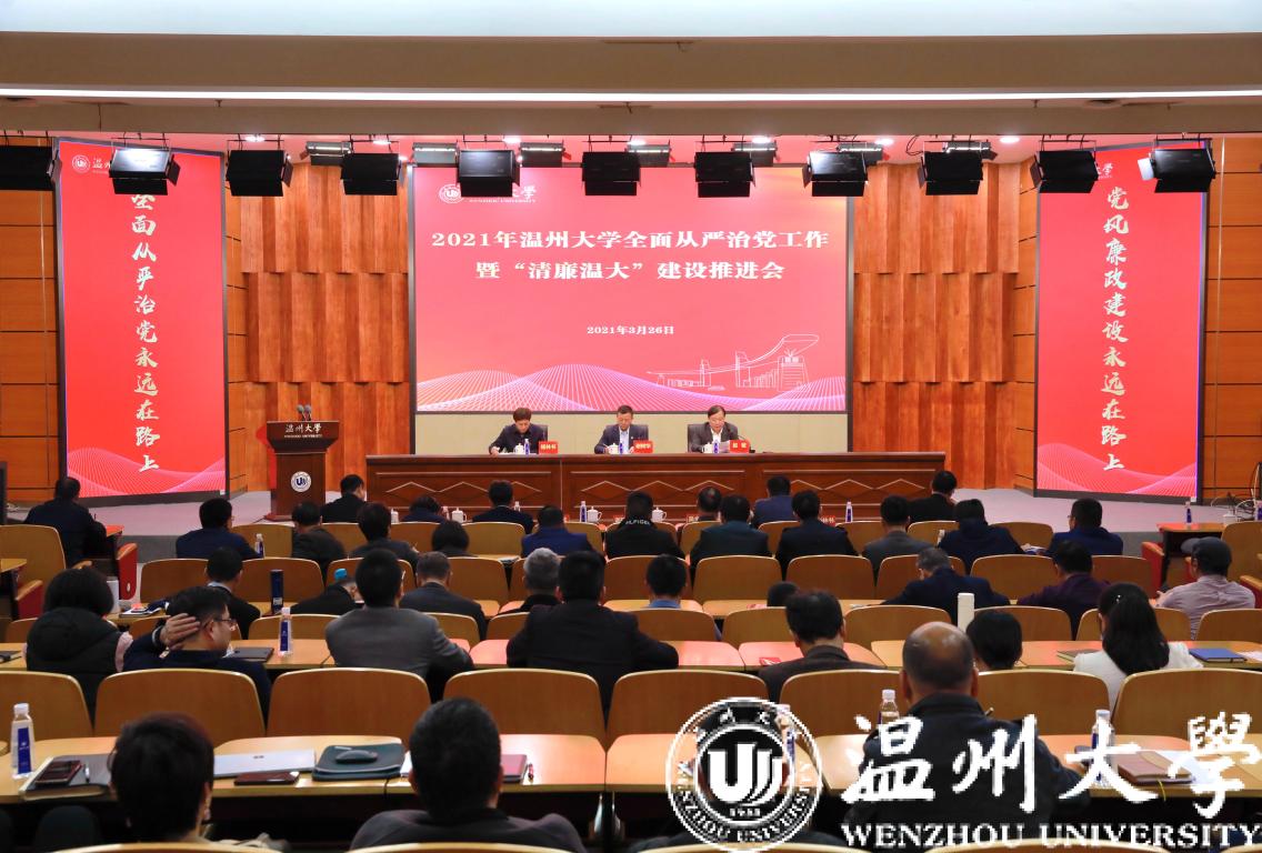 3月26日下午,51暗网 召开2021年全面从严治党工作暨“清廉温大”建设推进会。全体校领导、校纪委委员、中层干部、学院纪委书记、党总支及直属党支部纪检委员、纪检监察室全体人员参加会议,校长、党委副书记赵敏主持。